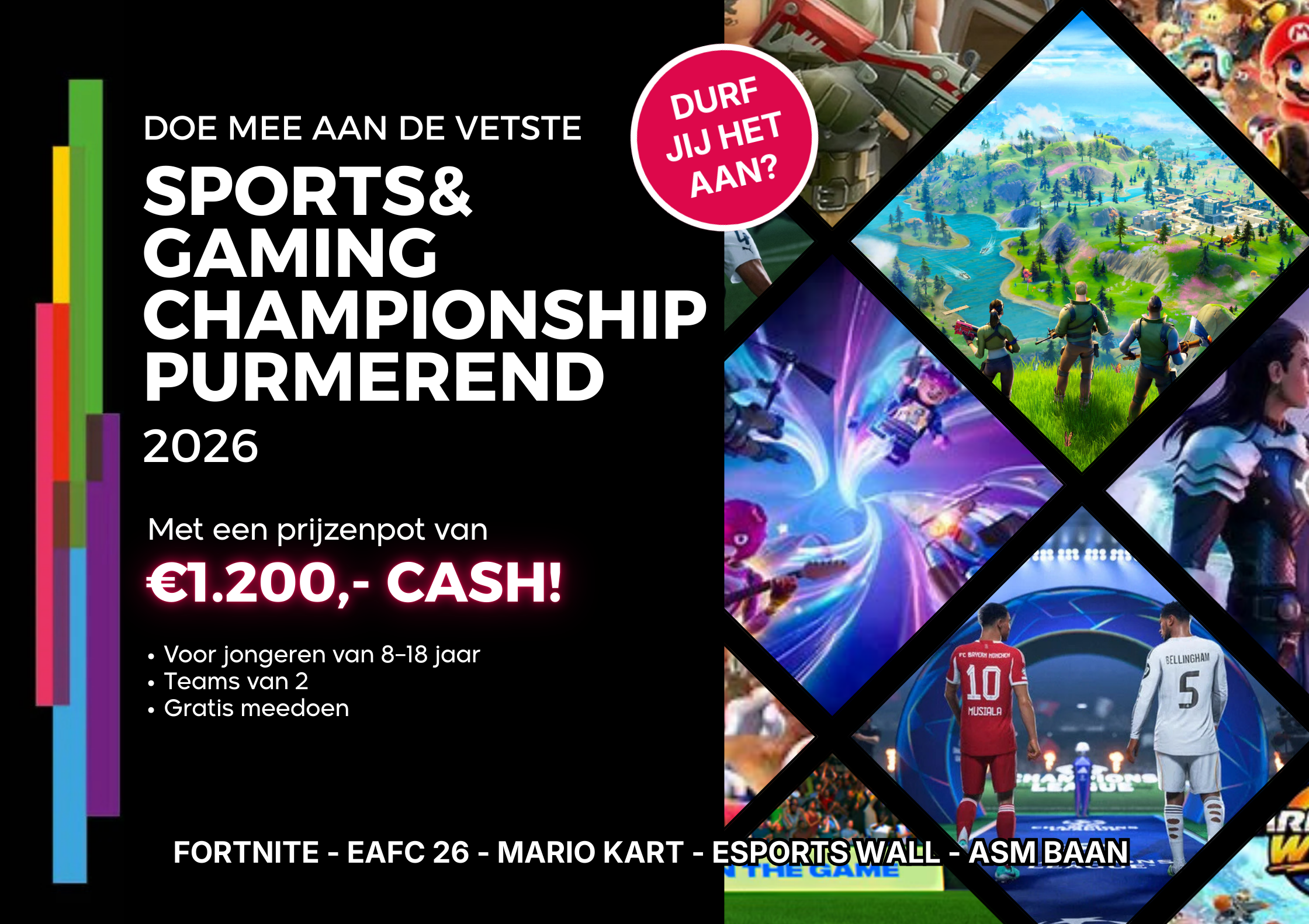 The Sports & Gaming Championship Purmerend 2026 is the championship for young people aged 8 to 18 from Purmerend. This unique tournament is not only about gaming, but also about exercise and sports.