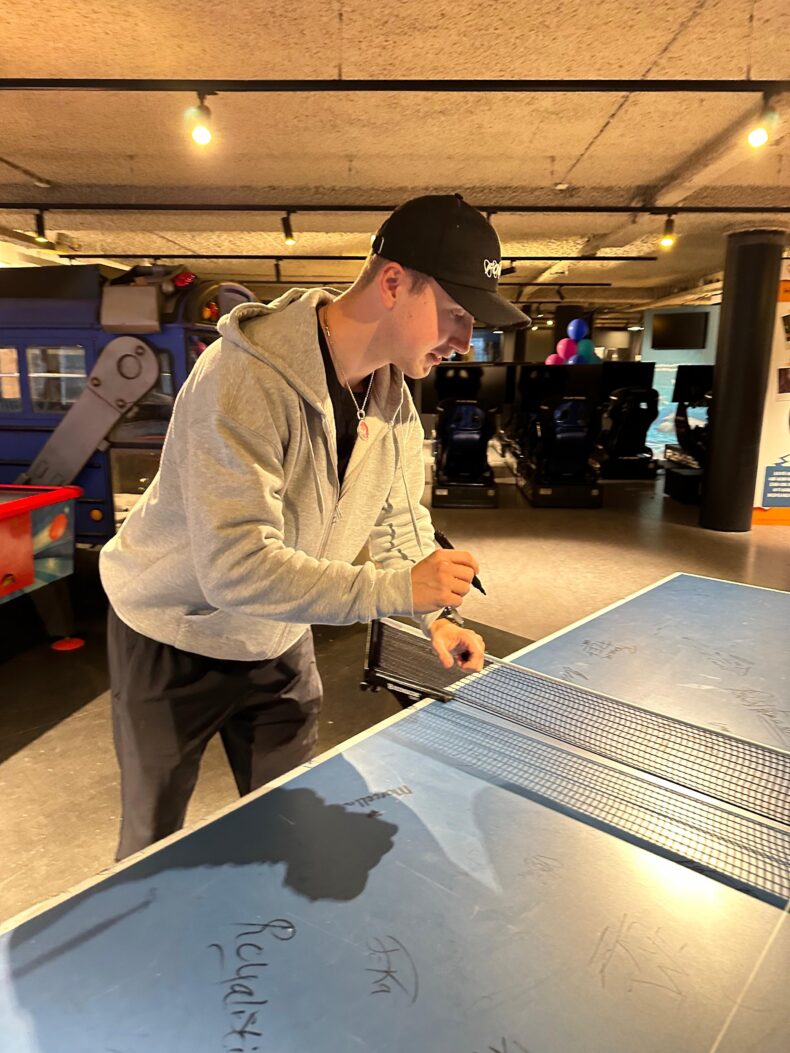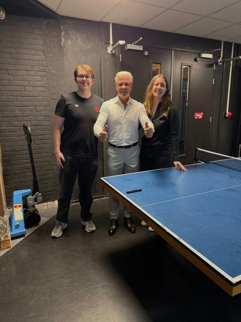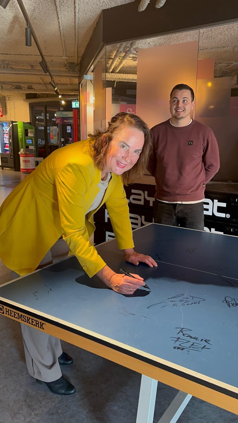 La mesa fue donada en 2020 por Simon Keizer, de Volendam, que se hizo famoso con el dúo musical Nick&Simon. Ávido jugador de tenis de mesa y amigo de H20 desde el principio.