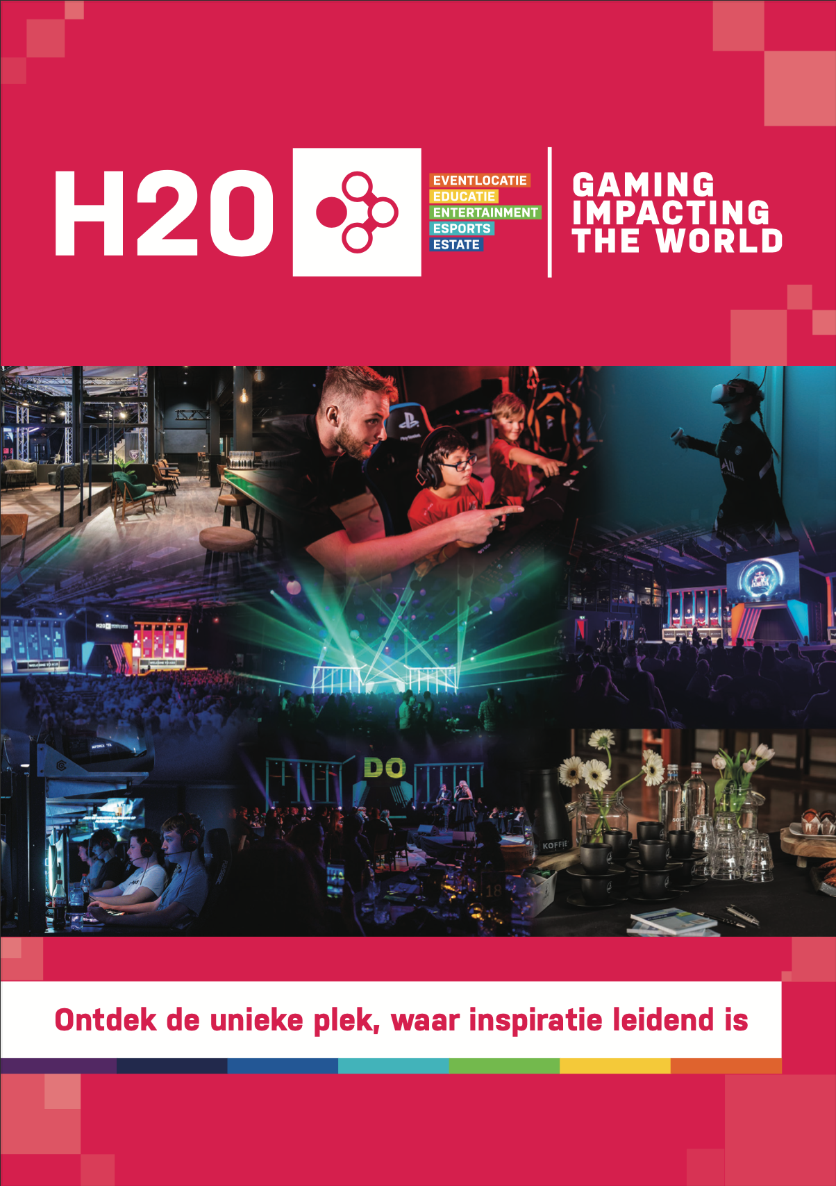Als uniek concept – het enige in zijn soort wereldwijd – bouwen we verder op onze vijf pijlers: Eventlocatie, Educatie, Entertainment, Esports en Estate. Met onze vernieuwde huisstijl en positionering presenteren we vol trots de volgende fase van H20.